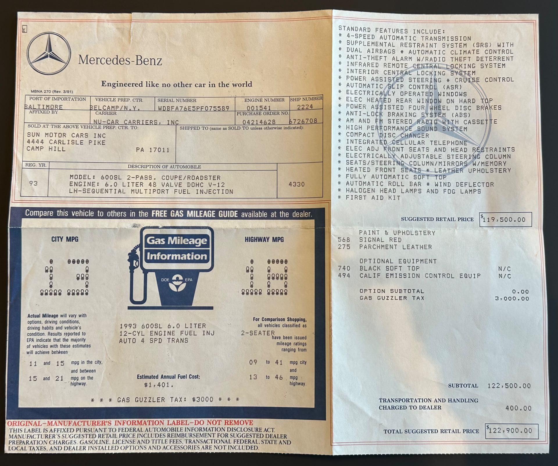 1993 Mercedes-Benz 600SL