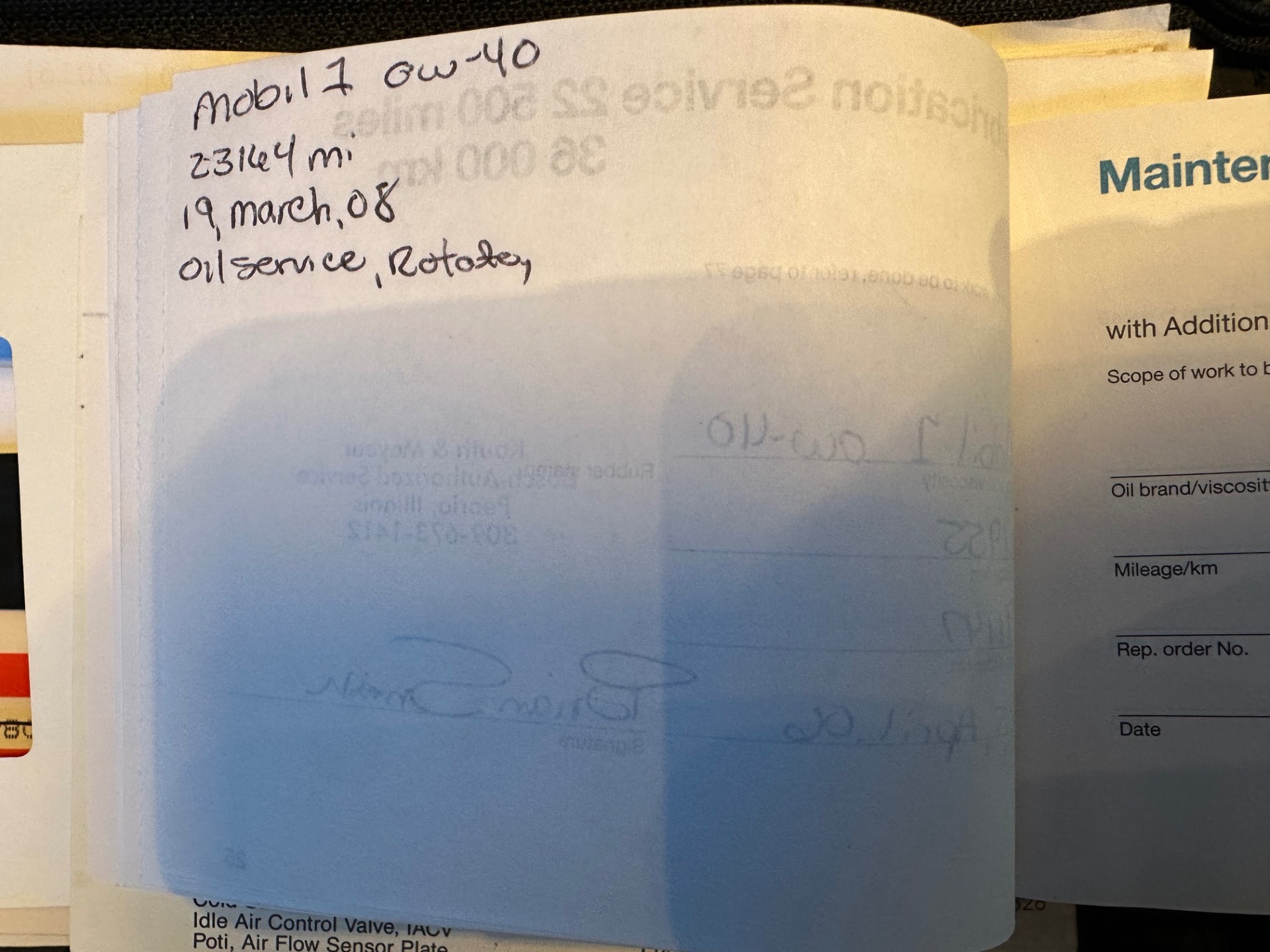 Thermostat, idler pulley, coolant pipes and O-rings replaced